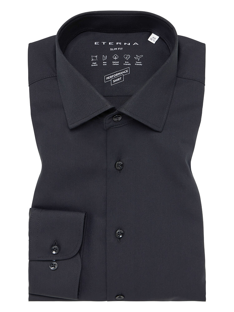 La camisa de negocios elegante de la colección ETERNA Slim Fit representa al hombre delgado y preocupado por la moda de hoy. Un corte delgado combinado con detalles de moda prometen un alto nivel de confort y hacen de esta camisa un artista de la combinación. La camisa lisa de hombre en el color negro para hombre no debería faltar en el armario de ningún hombre y puede llevarse con el cuello elegante y atemporal Kent para cualquier ocasión, así como en la vida cotidiana. Esta camisa de hombre ETERNA Slim Fit queda mejor con una corbata estrecha y un pequeño nudo de corbata.Información del fabricante: