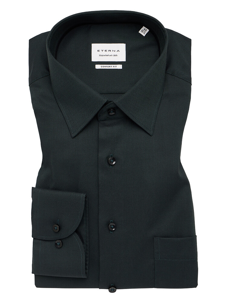 La camisa de negocios cómoda de la colección ETERNA Comfort Fit representa al hombre sofisticado y consciente de la moda de hoy. Un corte clásico combinado con detalles de moda del producto promete un alto nivel de confort y hace de esta camisa un maestro de la combinación. La camisa lisa de hombre en el color verde para hombre no debería faltar en el armario de ningún hombre y puede llevarse con el cuello elegante y atemporal Kent para cualquier ocasión, así como en la vida cotidiana. Esta camisa de hombre ETERNA Comfort Fit queda mejor con una corbata a juego y un nudo de corbata ancho.Información del fabricante: