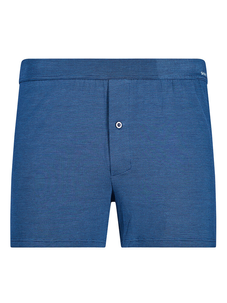 Los bóxers SKINY Cooling Deluxe en azul marino, con un sutil diseño a rayas, ofrecen una agradable sensación de frescor y una comodidad excepcional. Su suave tejido de punto, compuesto por un 95 % de viscosa y un 5 % de elastano, garantiza una óptima libertad de movimiento y un ajuste cómodo. Con un tiro y un corte regulares, estos bóxers son muy cómodos. Cuentan con bragueta de botones, son fáciles de planchar, lavables a máquina y una prenda básica de uso diario que no requiere cuidados.
