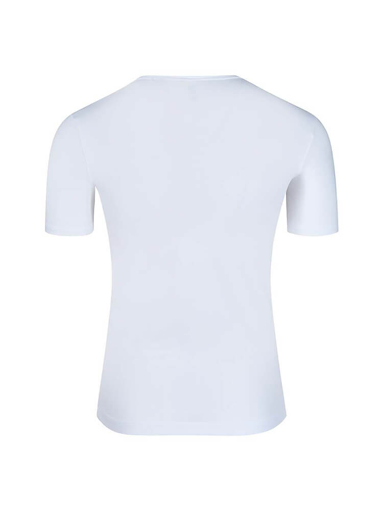 La t-shirt HUBER Hautnah Original bianca colpisce per la sua morbidezza e il comfort. Realizzata in 47% cotone, 47% modal e 6% elastan, questa maglia offre un'eccellente elasticità, delicatezza sulla pelle e traspirabilità. Con scollo a V, maniche a mezza lunghezza e vestibilità regolare, questa t-shirt è perfetta come intimo o come top leggero. Lavabile in lavatrice e facile da stirare, è ideale per l'uso quotidiano.