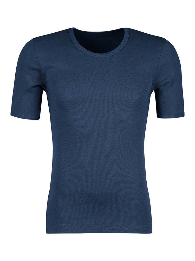 La T-shirt HUBER in cotone a costine sottili blu navy offre una sensazione di eccezionalmente morbida e confortevole grazie alla sua pregiata maglia a costine sottili realizzata in 100% cotone. Con scollo rotondo, maniche a mezza lunghezza e una comoda vestibilità regolare, questa T-shirt è ideale come intimo o top casual. È inoltre lavabile in lavatrice e facile da stirare.