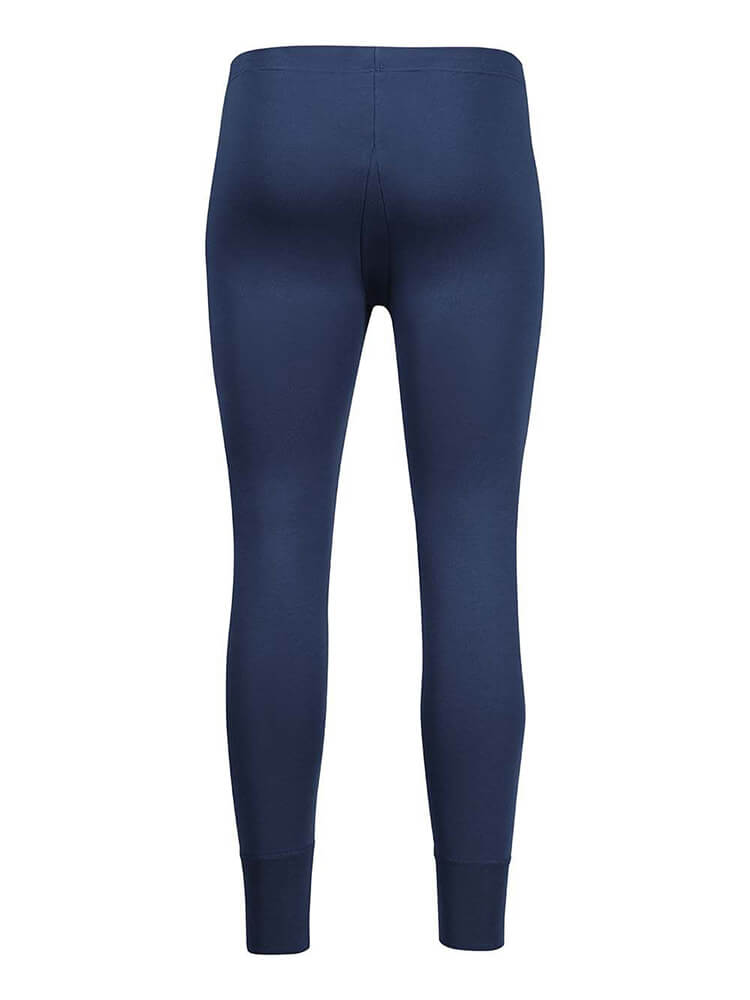 I pantaloni lunghi HUBER Thermo Cotton blu navy offrono un calore rilassante e una sensazione di eccezionalmente morbida grazie al pregiato tessuto interlock in 100% cotone. Questi pantaloni, con vita alta e pratica patta, presentano una vestibilità regolare e garantiscono un comfort eccezionale. Sono lavabili in lavatrice e facili da stirare.