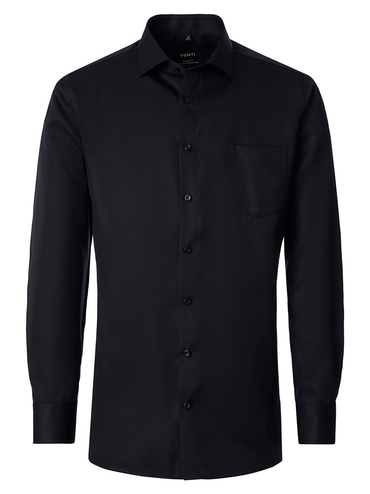 La camisa de negocios cómoda de la colección VENTI Comfort Fit representa al hombre sofisticado y consciente de la moda de hoy. Un corte clásico combinado con detalles de moda del producto promete un alto nivel de confort y hace de esta camisa un maestro de la combinación. La camisa lisa de hombre en el color negro para hombre no debería faltar en el armario de ningún hombre y puede llevarse con el cuello elegante y atemporal Kent para cualquier ocasión, así como en la vida cotidiana. Esta camisa de hombre VENTI Comfort Fit queda mejor con una corbata a juego y un nudo de corbata ancho.Información del fabricante: