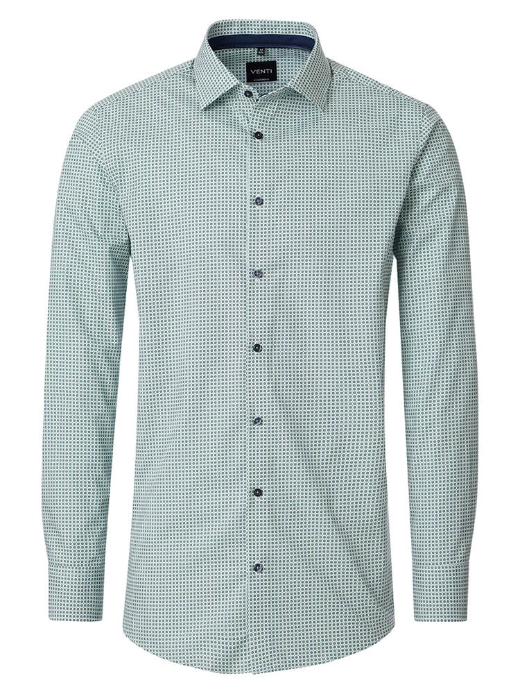 La camisa de negocios moderna de la colección VENTI Modern Fit representa al hombre de hoy, seguro de sí mismo y a la moda. Un corte contemporáneo combinado con detalles de producto de primera calidad promete un alto nivel de comodidad y hace que esta camisa sea un maestro del arreglo. La camisa con dibujos de hombre en el color verde para hombre no debería faltar en el armario de ningún hombre y puede llevarse con el cuello distinguido y clásico Kent para cualquier ocasión, así como en la vida cotidiana. Esta camisa de hombre VENTI Modern Fit queda mejor con una corbata a juego y un nudo de corbata ancho.