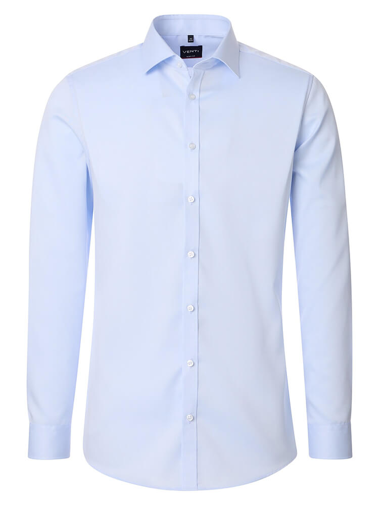 La camisa de negocios elegante de la colección VENTI Body Fit representa al hombre delgado y preocupado por la moda de hoy. Un corte delgado combinado con detalles de moda prometen un alto nivel de confort y hacen de esta camisa un artista de la combinación. La camisa lisa de hombre en el color azul claro para hombre no debería faltar en el armario de ningún hombre y puede llevarse con el cuello elegante y atemporal Kent para cualquier ocasión, así como en la vida cotidiana. Esta camisa de hombre VENTI Body Fit queda mejor con una corbata estrecha y un pequeño nudo de corbata.