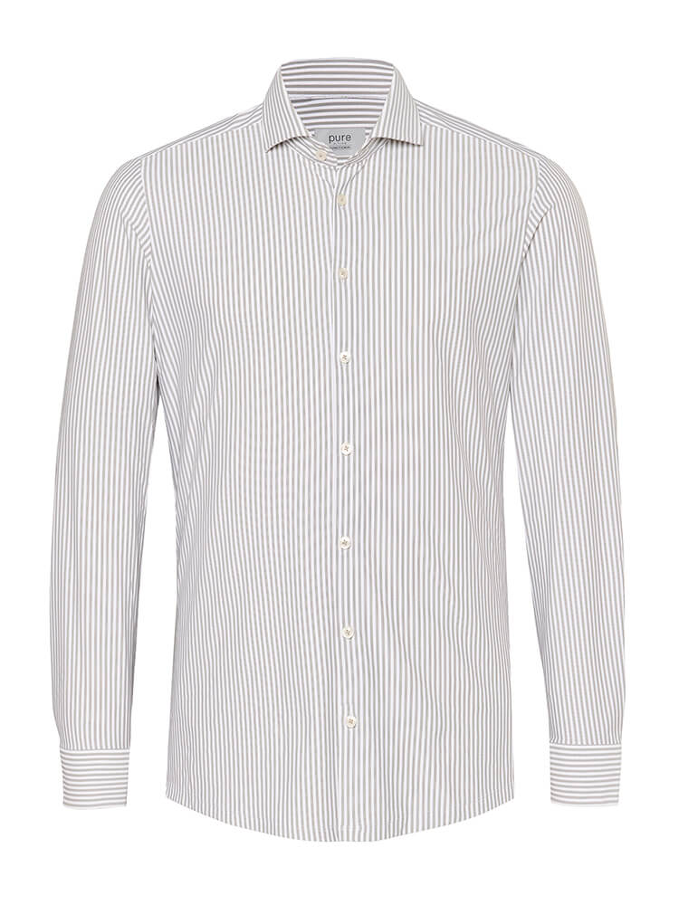 La camisa de jersey elegante de la colección PURE Functional representa al hombre delgado y preocupado por la moda de hoy. Un corte delgado combinado con detalles de moda prometen un alto nivel de confort y hacen de esta camisa un artista de la combinación. La camisa rayado de hombre en el color gris para hombre no debería faltar en el armario de ningún hombre y puede llevarse con el cuello elegante y atemporal Cutaway para cualquier ocasión, así como en la vida cotidiana. Esta camisa de hombre PURE Functional queda mejor con una corbata estrecha y un pequeño nudo de corbata.Información del fabricante: