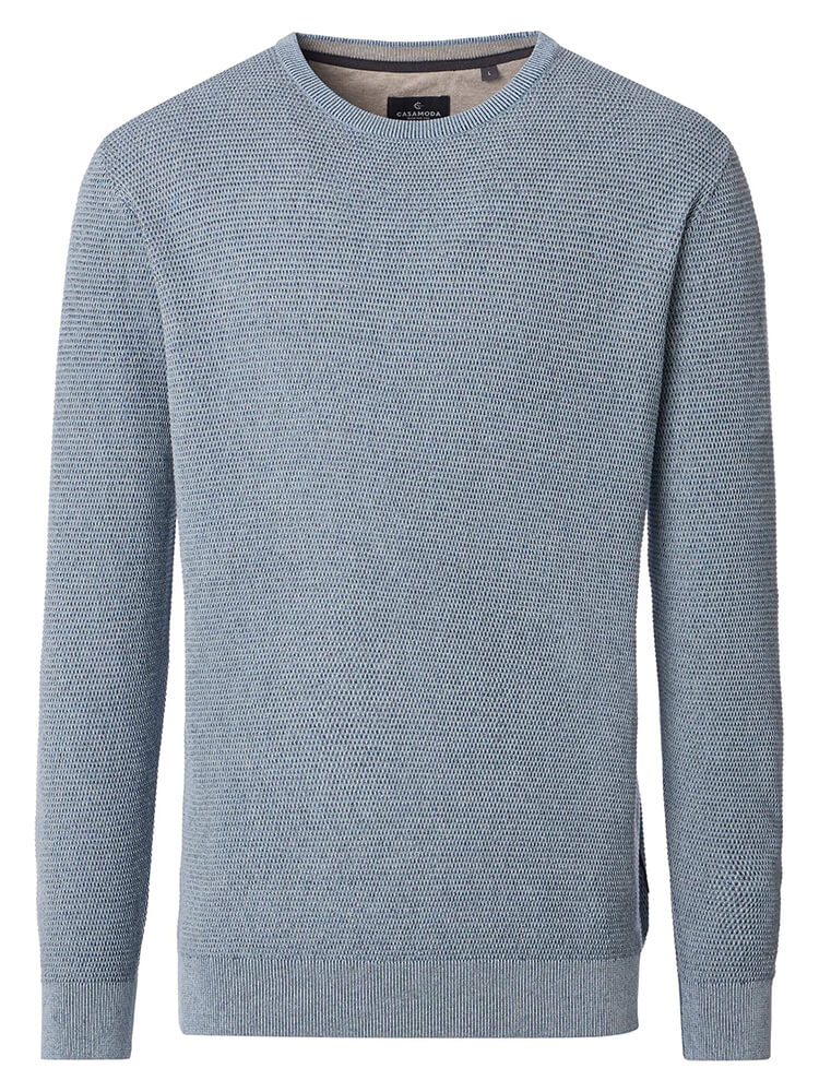 Sea cual sea la estación del año, este estiloso jersey de punto CASAMODA regular fit te hará sentir cómodo en las noches o días más frescos. Este jersey de punto liso en azul claro fabricado en 100% algodón con un elegante cuello redondo complementa tu vestuario y resalta tu silueta masculina. Ya sea en tu tiempo libre o en la oficina, el factor de bienestar está garantizado con este jersey igeramente entallado de CASAMODA.Información del fabricante: